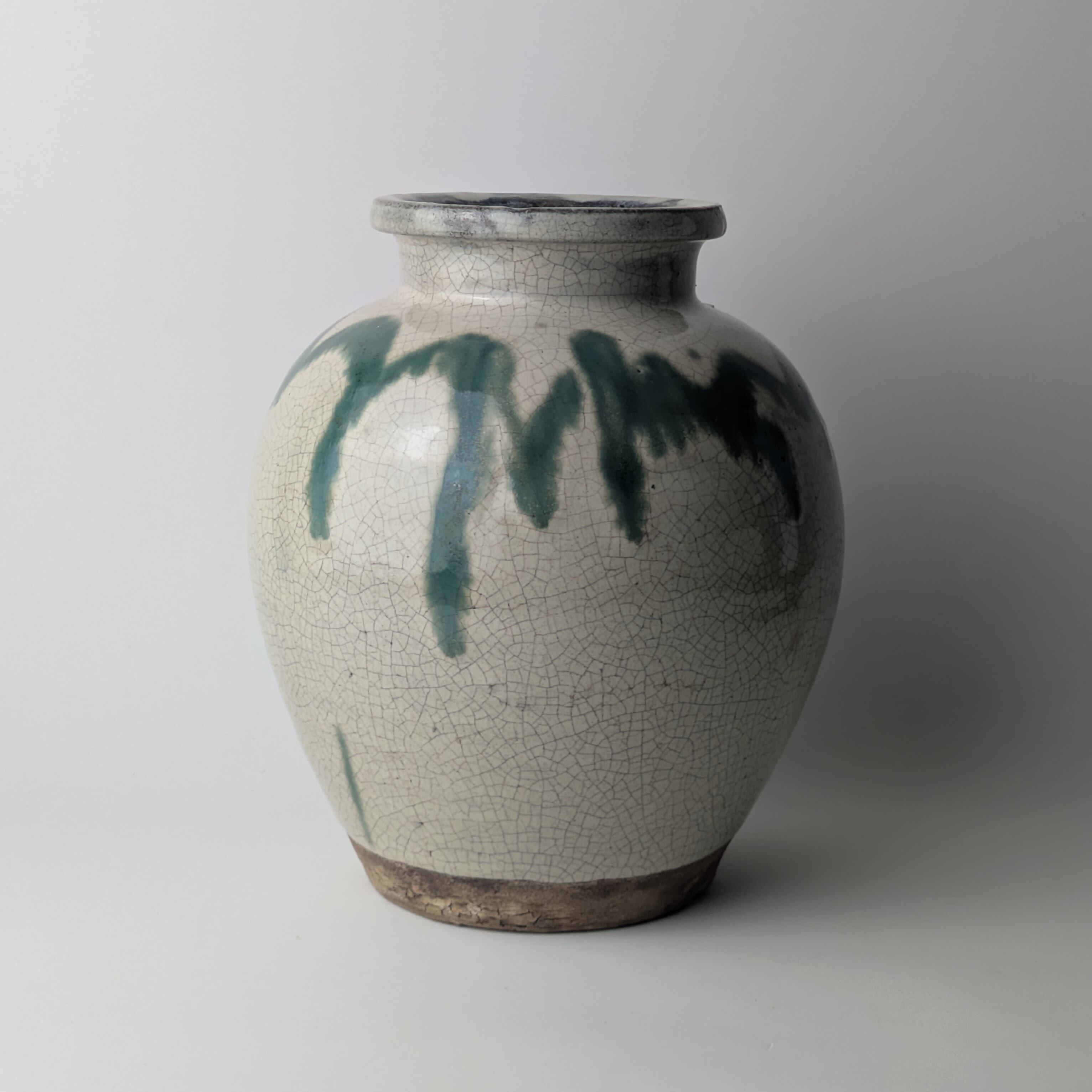 笠間焼糠白釉青流掛壺