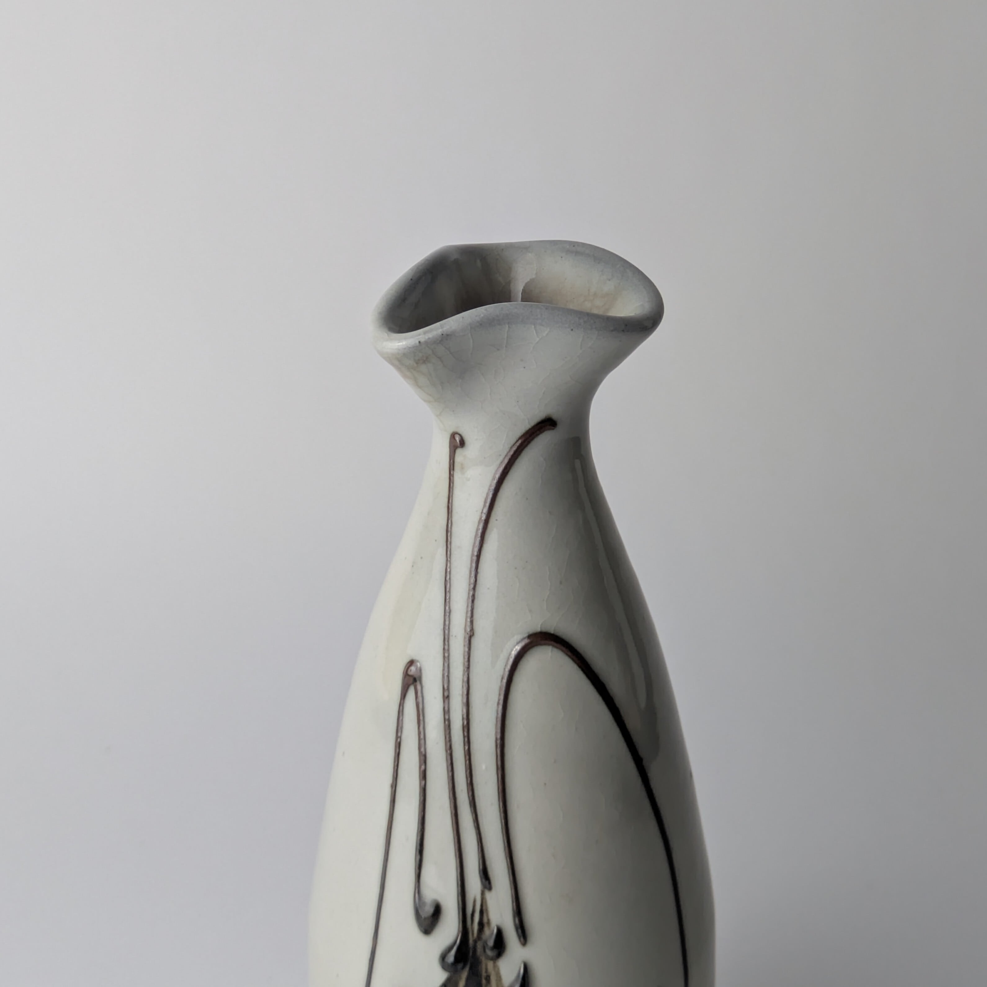 白丹波筒描海老徳利 目立ったキズや汚れはありませんが、 鳶口の先が若干生っぽくなっています。 高 / 18.2cm