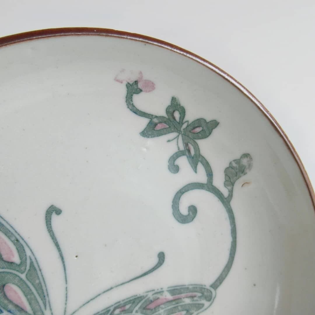 絵付けの手法は印判によるもので、縁には口ベニが施されています。