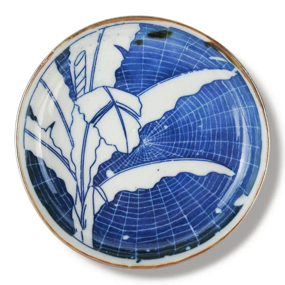 明治末~大正期 銅版染付蜘蛛巣芭蕉文皿
