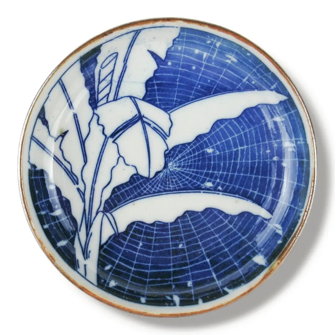 明治末~大正期 銅版染付蜘蛛巣芭蕉文皿