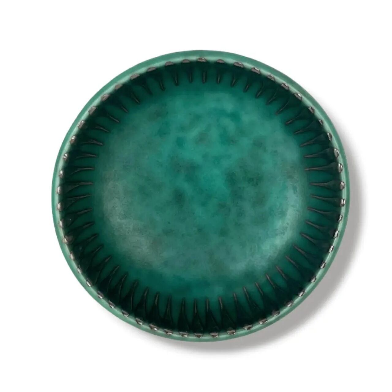 深いエメラルドグリーンの釉薬が美しい豆皿です。
